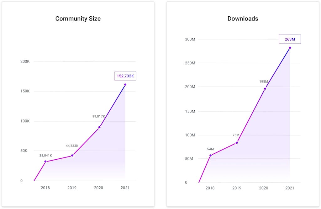 And with over 2M instances and more than 257M downloads our OSS community has more than doubled over the last year.