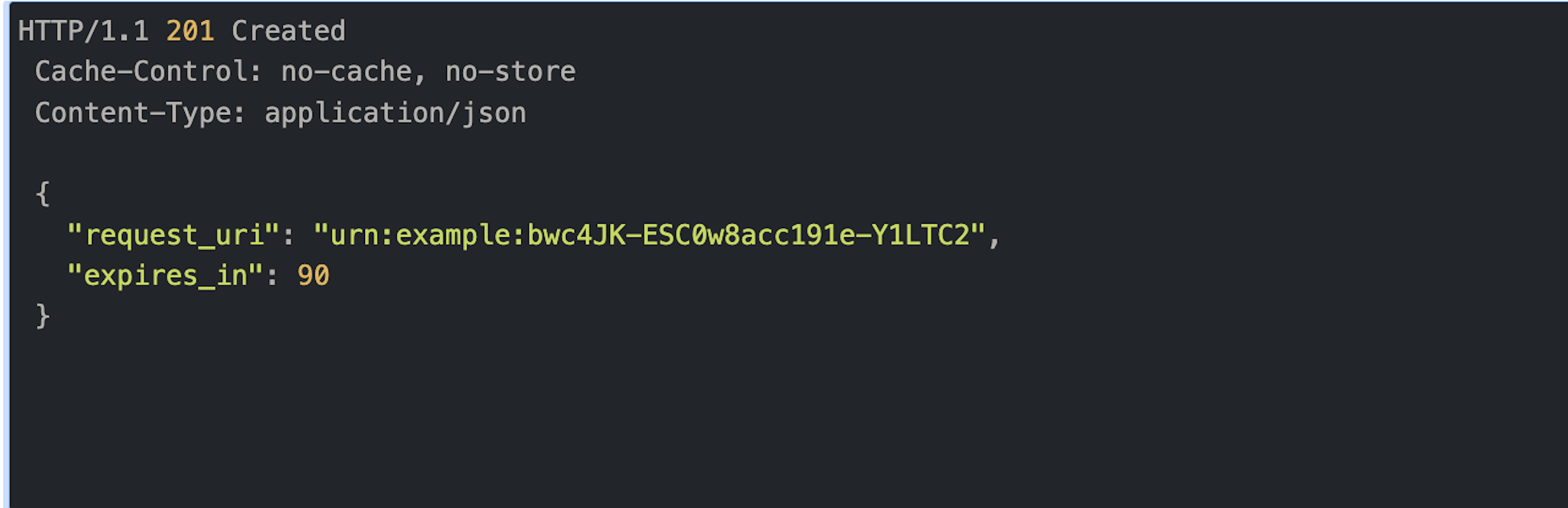 Response from the authorization server’s PAR endpoint, which includes a request_URI. The value and lifetime of the request_URI are contained in the response from the PAR endpoint.