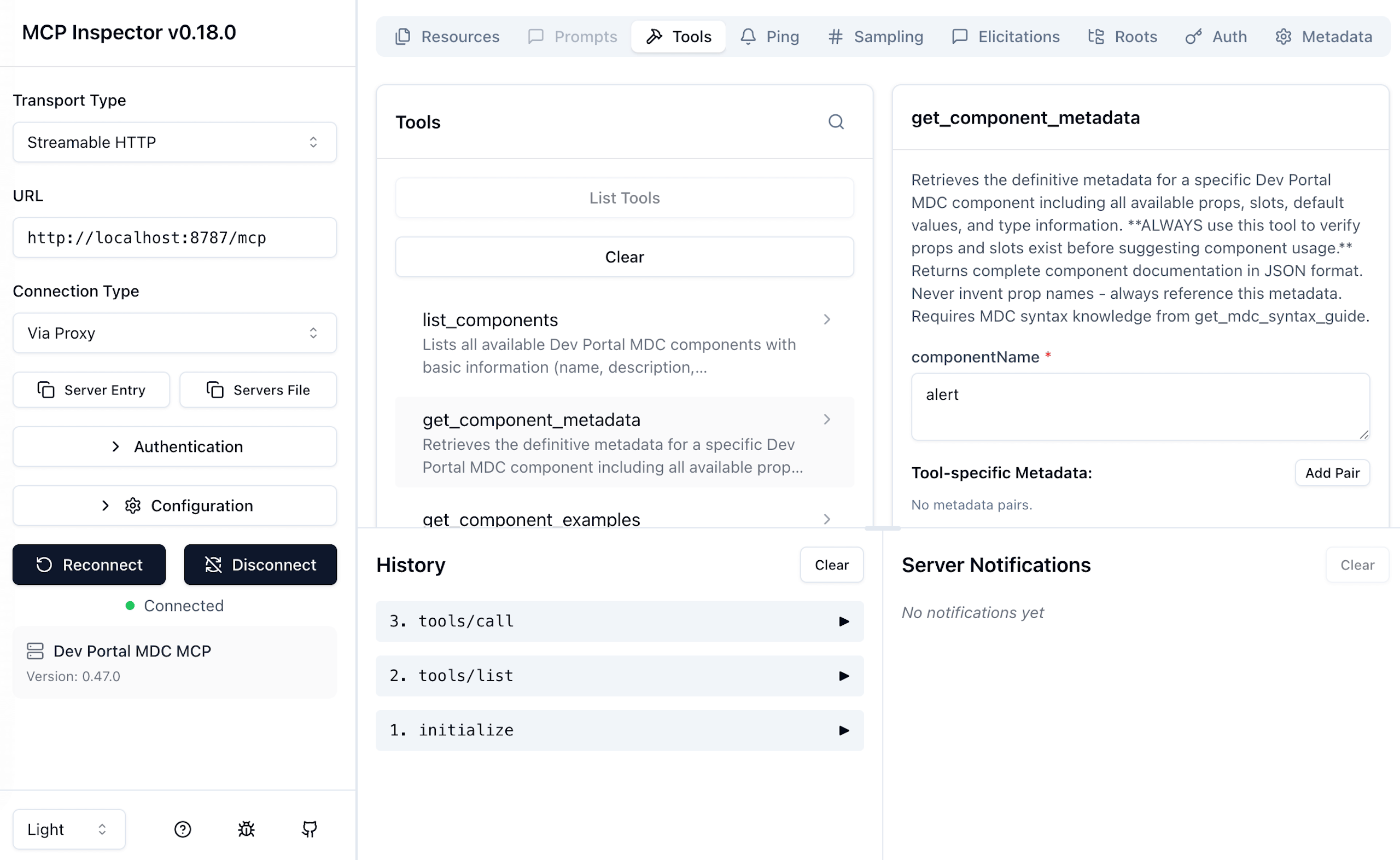 The AI client automatically reads your component_docs resource to learn about page-hero and card components, generates the MDC content, and then calls your validate_mdc_syntax tool to ensure the syntax is correct before presenting it to the user. The user never needs to know which tools were called or how the MCP protocol works behind the scenes.