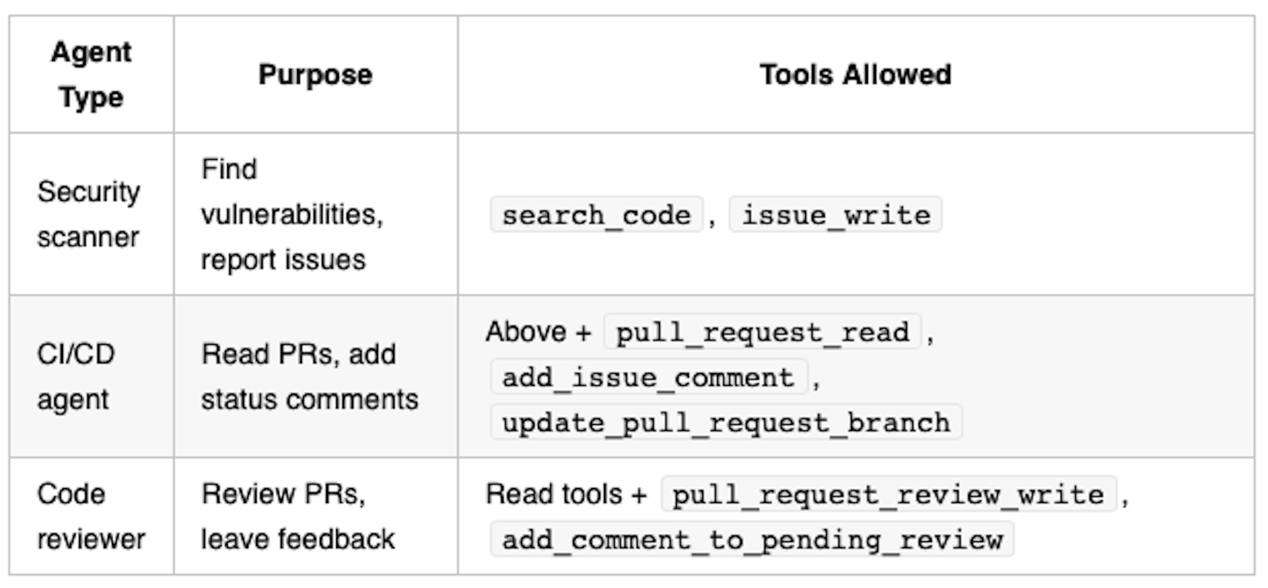 The key insight: the tool list terminates at the gateway. The backend MCP server might expose 40 tools, but your security-scanner agent only sees 2.