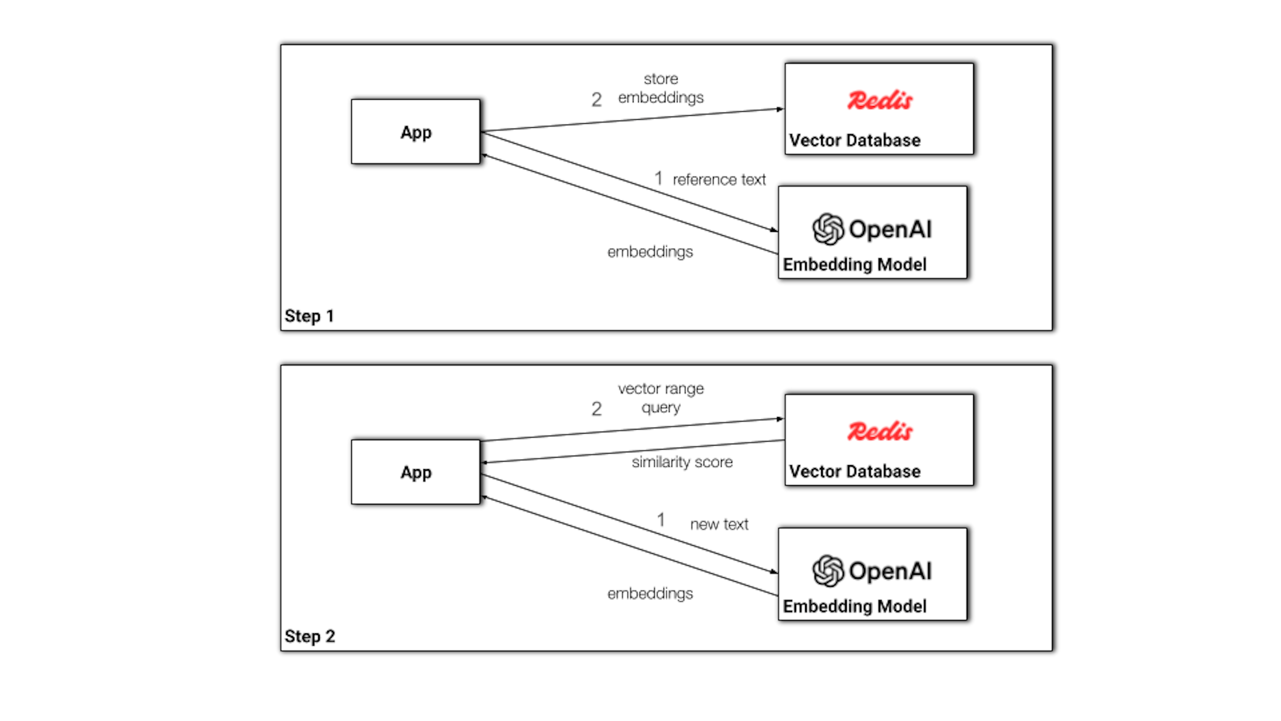 - Stores the embeddings of a reference text, generated by OpenAI Embedding Model.