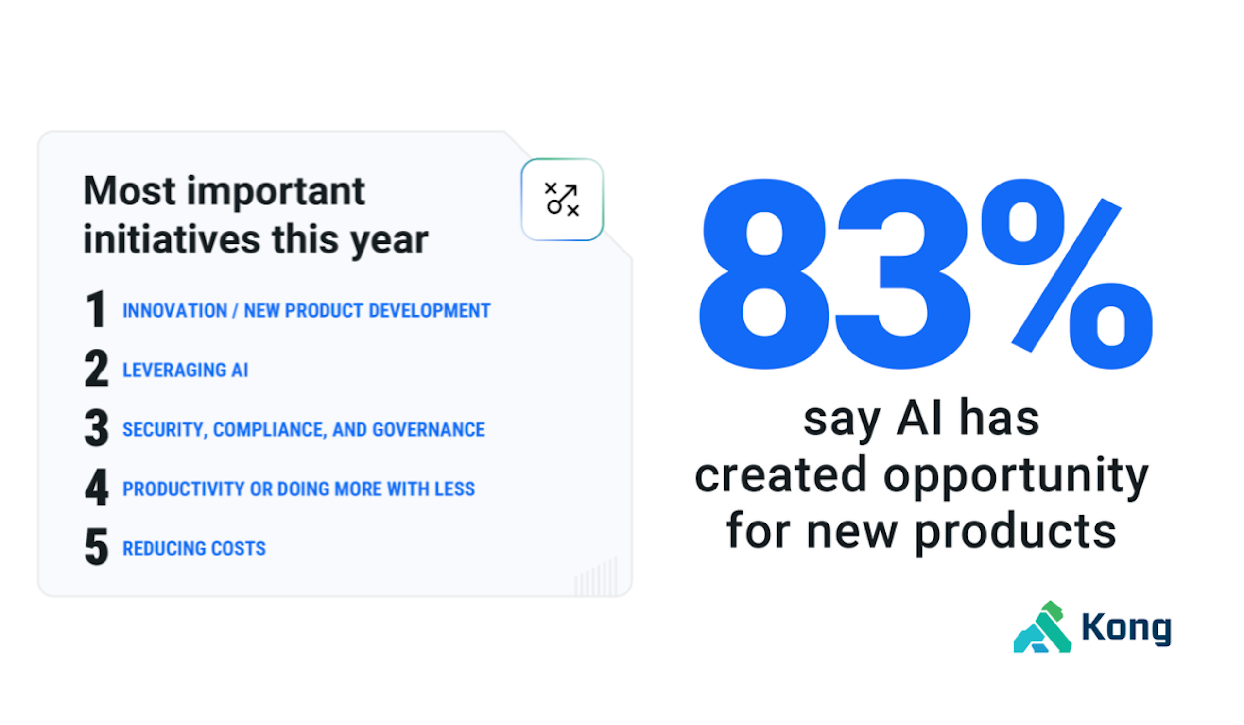 In Kong's 2024 API Impact Report survey of developers and business leaders, we found that 83% say AI investments have created the opportunity for new products or services in the last year. It's probably not surprising to hear then that 92% report that AI is a priority in the year ahead.
