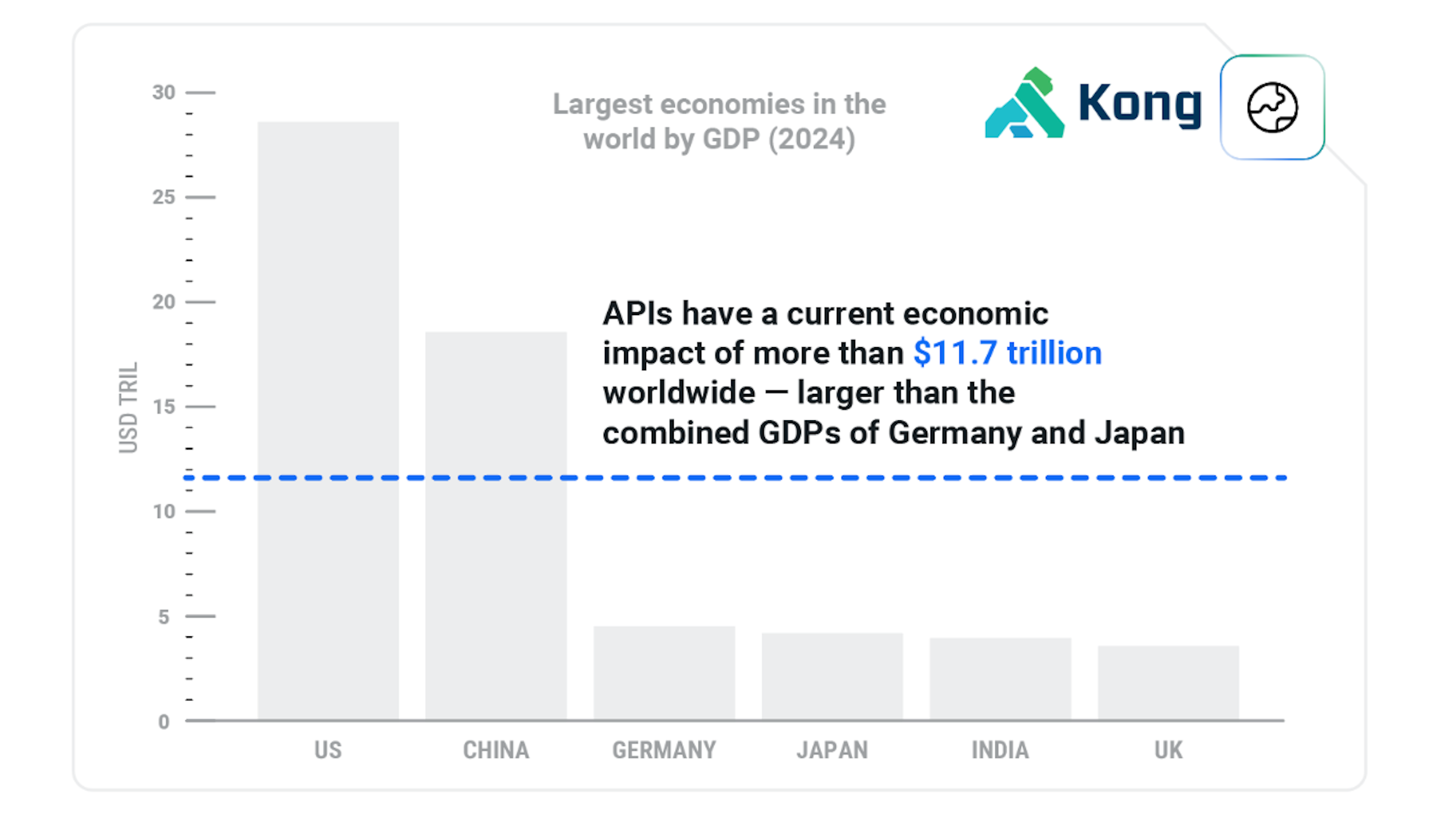 According to our research, the global economic impact of APIs is currently around $11.7 trillion — and it's expected to reach $17.3 trillion by 2030. Likewise, the value of APIs to enable AI is forecasted to have a cumulative economic impact of $43 trillion by the end of this decade.