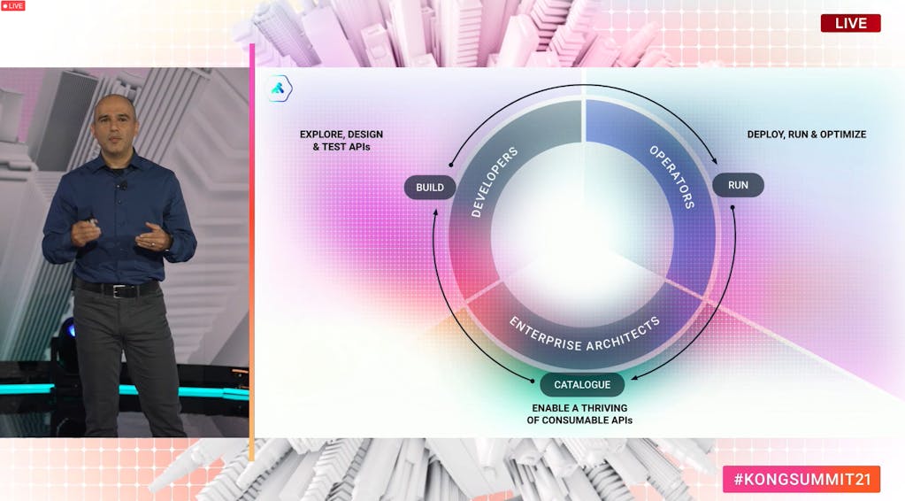 Reza Shafii, VP of product at Kong, then took the stage to share three core activities that we see our most successful customers excel at in enabling connectivity within their enterprise. Reza shared the stories of a number of customers leveraging Kong's products for three core activities (build, run and catalogue). Along the way, Reza also made some exciting product announcements.