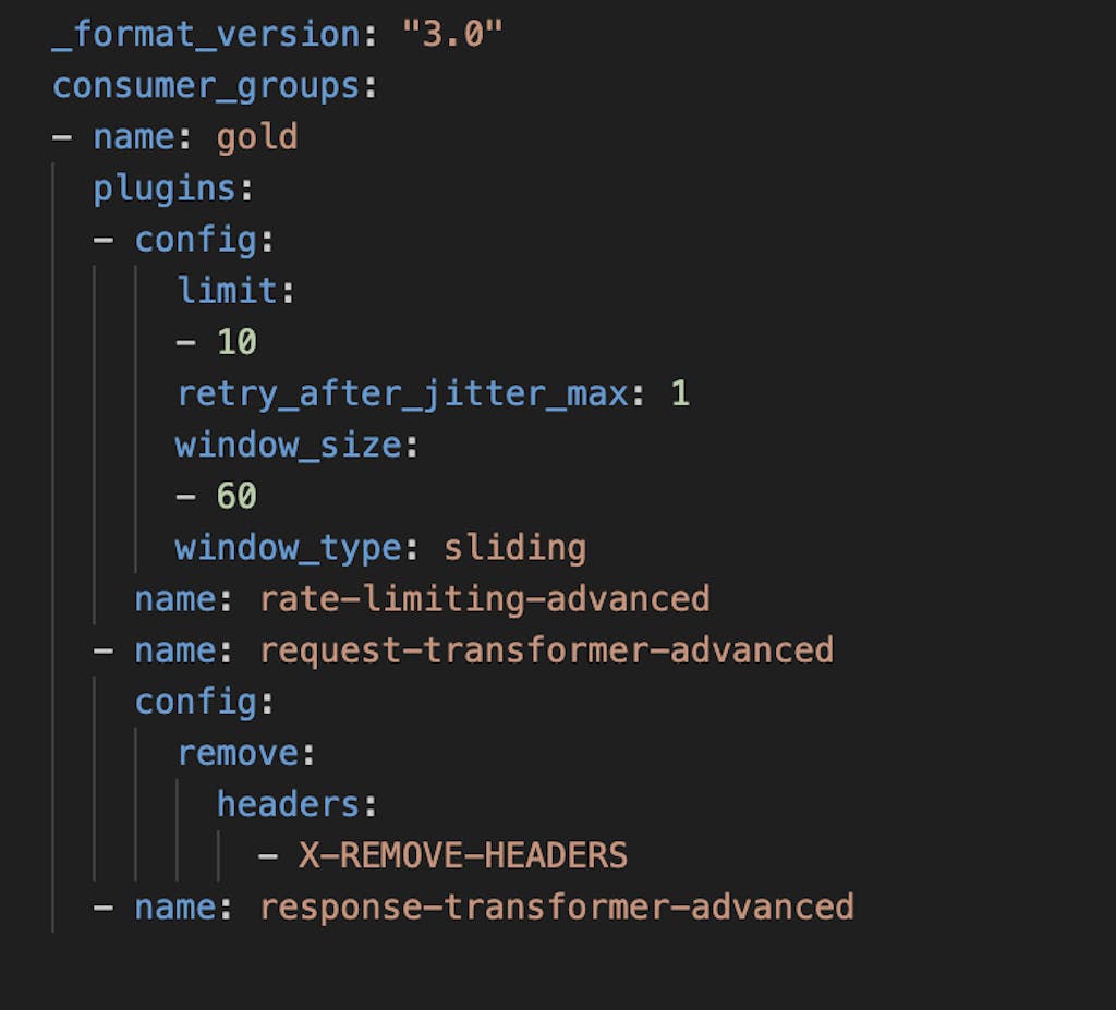 Today, enterprise customers can use Consumer Groups to place their consumers into ‘tiers' based on some identifier, like ‘plan type' or ‘subscription level' and place limits on rate using the Rate Limiting Advanced plugin. This powerful feature helps group similar consumers into a single configuration, which can dramatically reduce the number of Rate Limiting plugins that need to be configured.