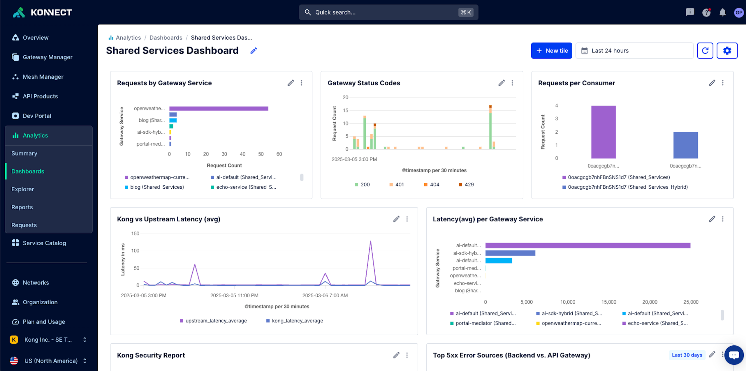 We’re pumped to announce a brand-new feature in Analytics called Custom Dashboards (in tech preview) that allows users to build fully customized dashboards to consolidate key data in a single page and uncover relationships between data points. (Note that in order to start using the Custom Dashboards feature, you'll need to enable it via Konnect Labs.)