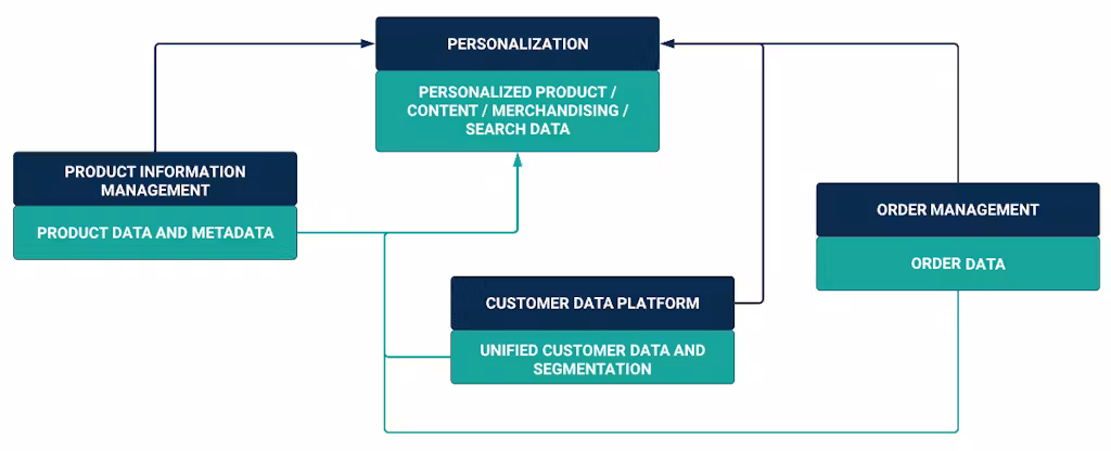 The outcome is exposed both as a Personalization API and as new, enriched datasets that relate product, content, merchandising, and search data with individual and aggregated customer groups. For this scenario to be a reality, the personalization team depends on high-quality data and API services from other domains.