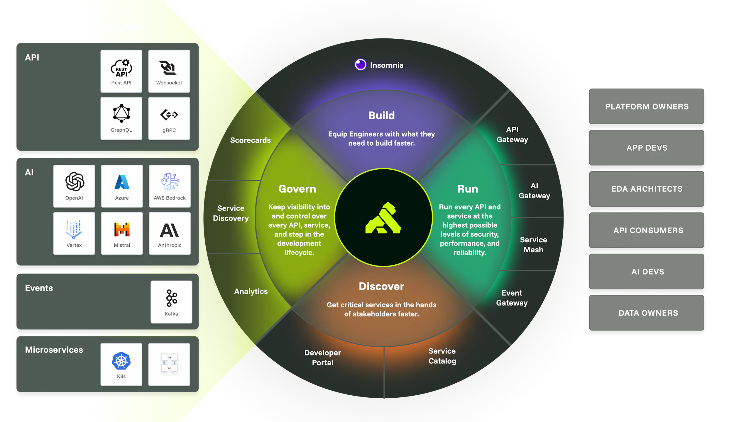 Spin up your API platform and onboard your engineering teams, business teams, and the non-human API stakeholders (think AI agents) onto the various Kong API products they need to do their jobs well.