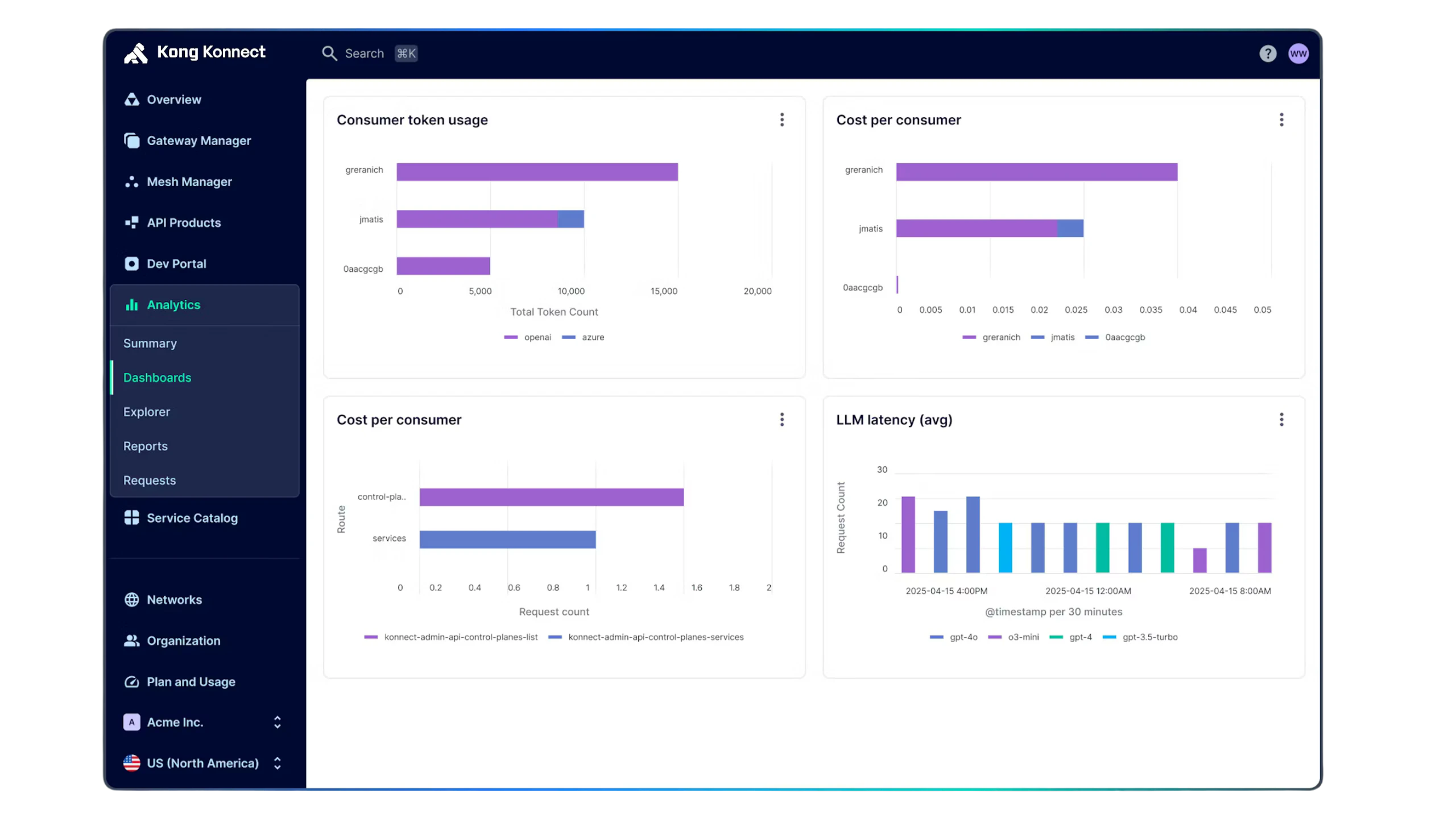 Stand up [analytics and observability dashboards](/products/kong-konnect/features/advanced-analytics)analytics and observability dashboards that give platform and executive teams rich insight into every MCP transaction across the business.