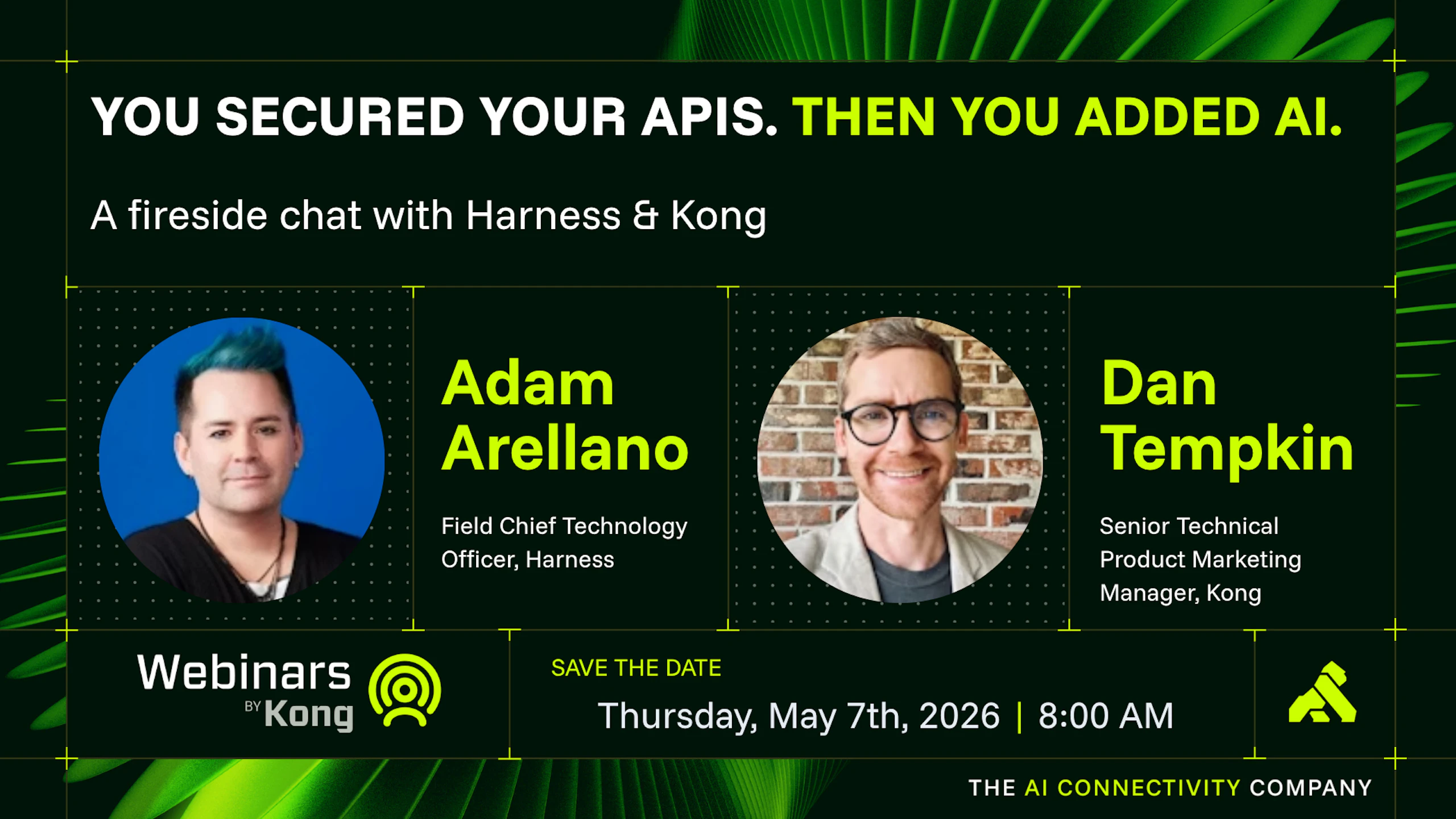 [webinars](/events/webinars)webinars [__Monetizing the Agentic Era: Turning AI Consumption into Capital with Kong Konnect__](/events/webinars/monetizing-the-agentic-era)__Monetizing the Agentic Era: Turning AI Consumption into Capital with Kong Konnect__On-Demand[](/events/webinars/monetizing-the-agentic-era)