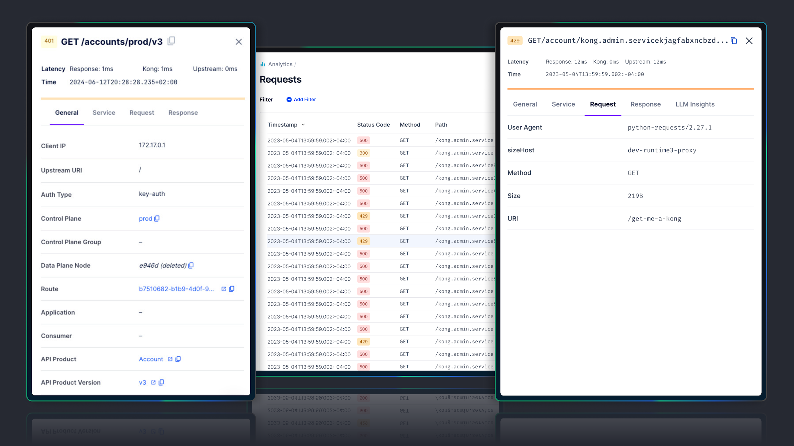 - Simplify initial investigations into errors with Kong-contextualized insights, allowing faster navigation to gateway configurations, consumers, and more.