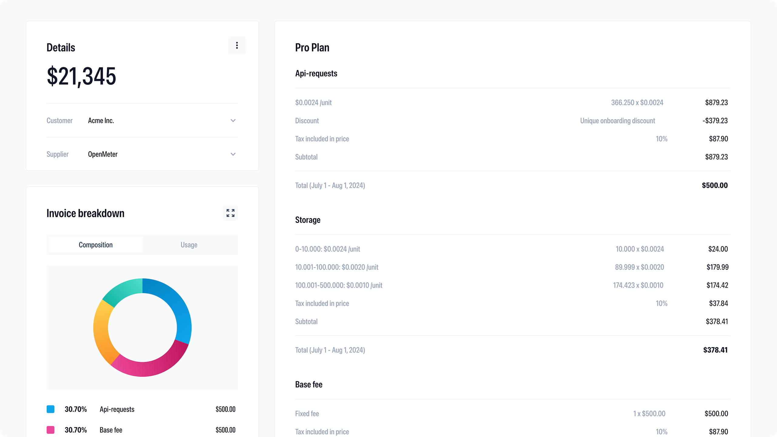 Flexible product catalog that supports your pricing and packaging. Make pricing changes in minutes instead of hardcoding it through weeks of tedious developer work. Whether it’s plans, credits, usage-based pricing, or commitments.