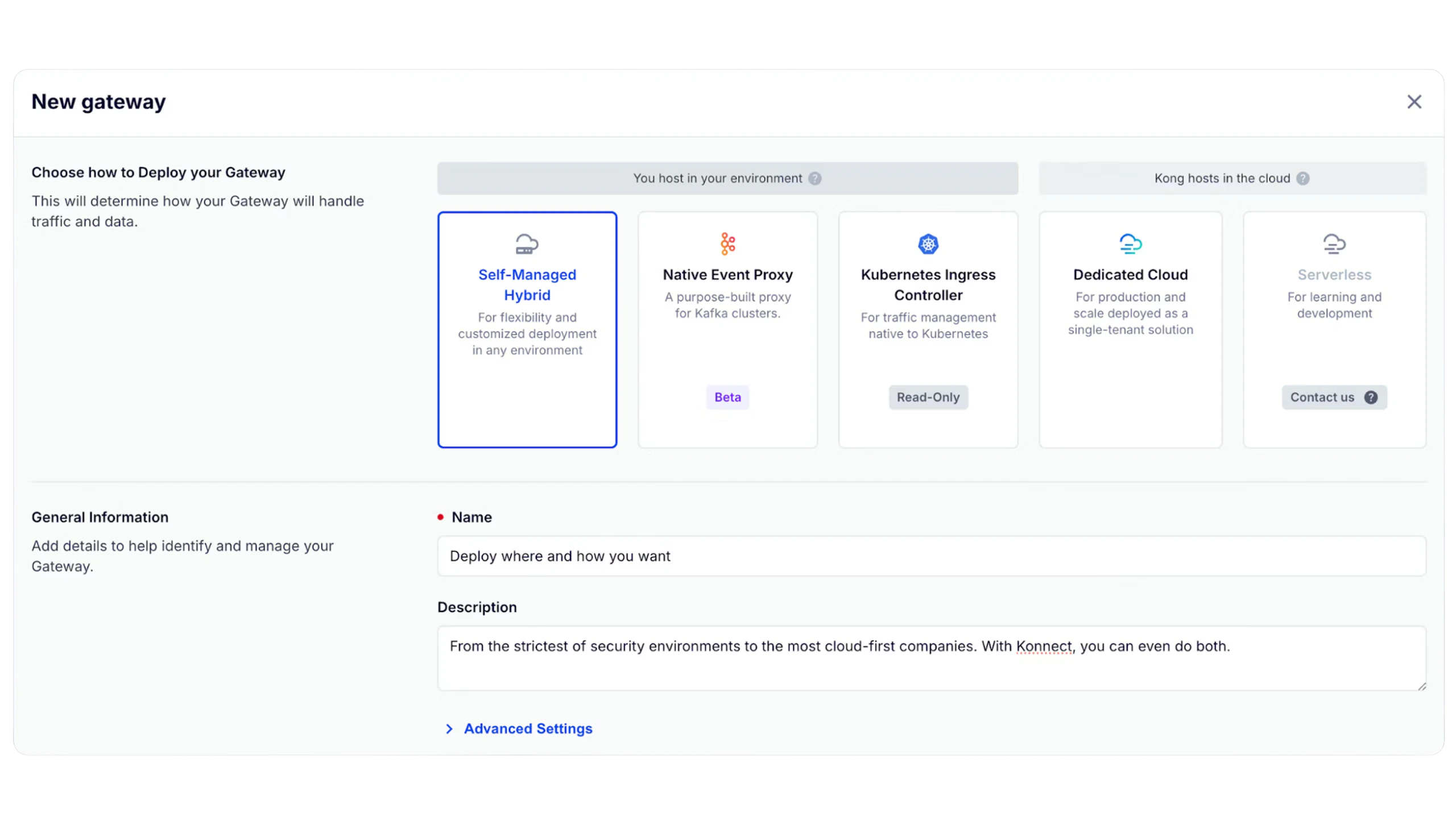 • Every gateway is set up in cloud infrastructure dedicated to your Konnect organization.