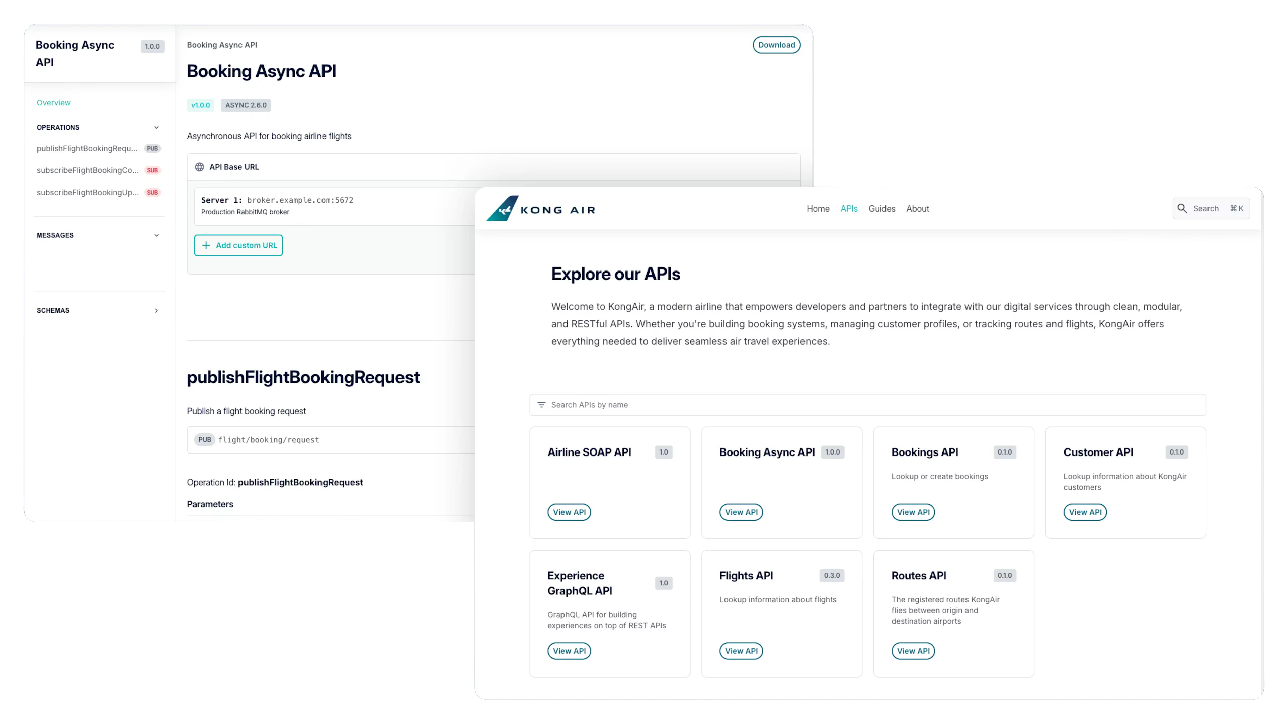 • For external agents, publish APIs and services in the Konnect Developer Portal.