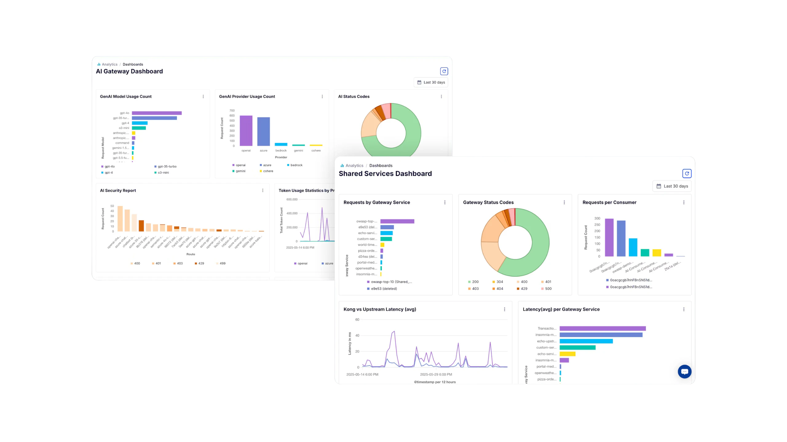 • AI teams can see agentic consumption of LLMs, token consumption per model, overall LLM performance, and more.